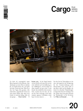Die Film/Medien/Kulturzeitschrift CARGO wird fünf. Gerade ist Heft 20 erschienen, ausgenüchtert gewissermassen – der Relaunch jedenfalls geht sparsamer mit Bildern und Zeichen um. Aus dem Inhalt: