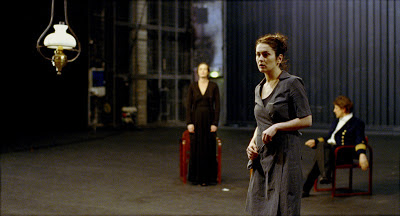 Das natürliche Licht wird durch diese Architektur, durch die Fenster die es gibt und die Größe der Fenster sozusagen modelliert. Es war auf jeden Fall ein ganz starker Impuls das Licht zu fotografieren. Ein ganz großes Thema am Anfang unserer Zusammenarbeit war es auch, nach Möglichkeit mit natürlichem Licht zu arbeiten oder zumindest den Eindruck herzustellen, dass es sich um natürliches Licht handelt, bzw. dass man das natürliche Licht, was vorfindlich ist, nicht zu sehr modifiziert. Bei Angela war das am Anfang schon fast obssessiv. Klassische filmische Mittel wie die Aufhellung waren tabu und bei Motivbesichtigungen haben wir immer schon versucht uns ein Bild zu machen, wie die Szene mit natürlichem, oder von der Architektur gestalteten Licht aussieht. Teilweise hat Angela auch als Modell fungiert, um das Licht auf den Personen sehen zu können.