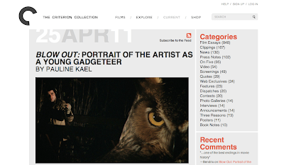 Kurzer Hinweis: das zu Recht legendäre DVD-Label Criterion ist bekannt nicht nur für die technische Brillianz seiner „director approved” Transfers sondern auch für üppige Bonus-Materialien. Wichtiger Bestandteil jedes Booklets: ein Essay über den Film, von einigen der interessantesten heute in den USA schreibenden Kritikern. Das Schöne: 848 dieser Essays sind online lesbar. Einmal abgesehen von dem nicht ganz unwichtigen Faktor, dass diese Texte Begleitmaterial darstellen, also innerhalb gewisser Grenzen für die Filme, die sie behandeln, werben müssen (mindestens wird man keine Verächter der Filme um Texte bitten) – finden sich darunter wirkliche Schätze kritischer Filmreflektion zu vielen großartigen Filmen. So oder so, ich kann das Stöbern sehr empfehlen.